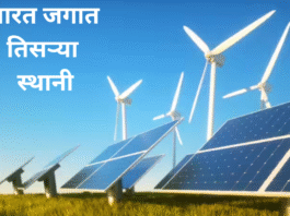 नवीकरणीय उर्जा क्षेत्रात भारत जगात पोहोचला तिसऱ्या स्थानी