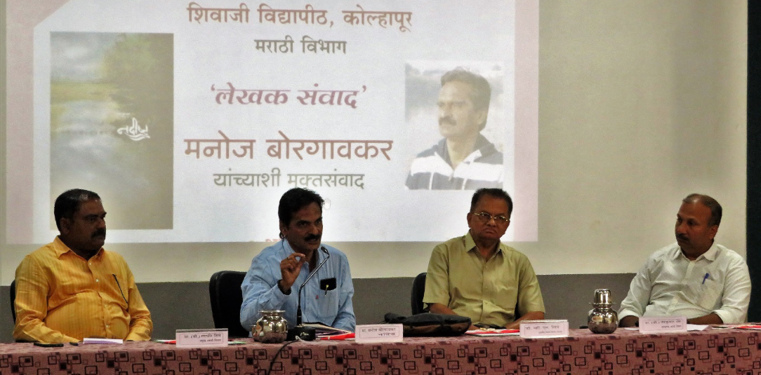 कोल्हापूर, दि. ९ जानेवारी: नदी हा माझ्या लेखनाचा केंद्रबिंदू आहे, असे प्रतिपादन ‘नदीष्ट’ या सुप्रसिद्ध कादंबरीचे लेखक मनोज बोरगावकर यांनी केले. शिवाजी विद्यापीठातील मराठी विभाग आयोजित ‘लेखक मुक्तसंवाद’ या कार्यक्रमात ते बोलत होते. अध्यक्षस्थानी कुलसचिव डॉ. व्ही. एन. शिंदे होते.