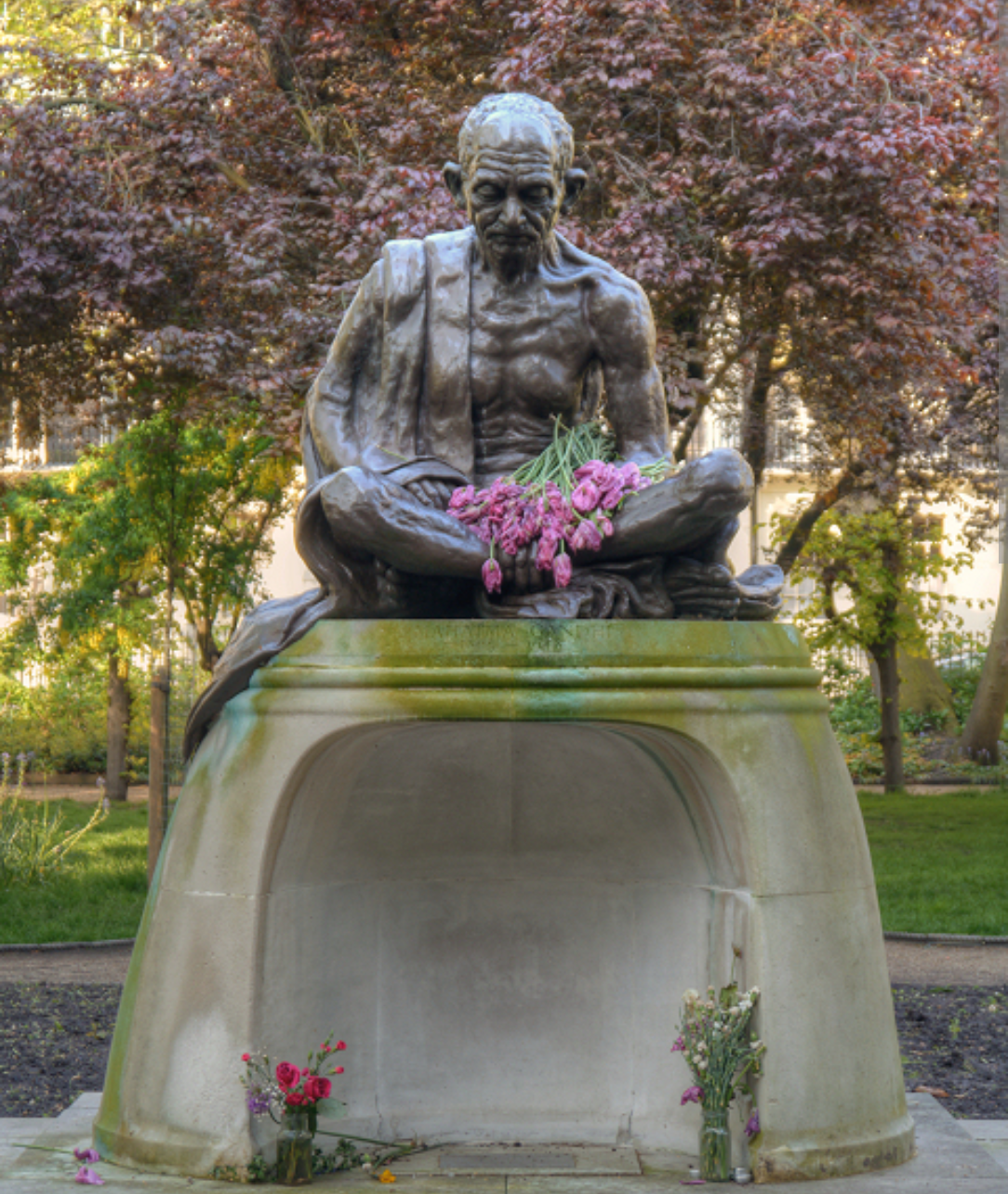 प्रसिद्ध कलाकार फ्रेडा ब्रिलियंट यांनी कोरलेल्या महात्मा गांधी यांच्या कांस्य पुतळ्याचे अनावरण १९६८ मध्ये झाले होते . युनिव्हर्सिटी कॉलेज ऑफ लंडनमध्ये कायद्याचे विद्यार्थी असताना महात्मा गांधींच्या दिवसांची आठवण म्हणून चौकात हा पुतळा उभा करण्यात आला होता .